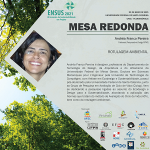 2- Dr. Andréa Franco – Designer e Professora Associada (DTecnologia-FAU/UFMG), Apresentação: Ecodesign e o problema do resíduo das embalagens domésticas;